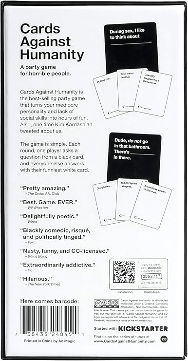 Amazon Com Cards Against Humanity Toys Games Source from : https://www.amazon.com/Cards-Against-Humanity-LLC-CAHUS/dp/B004S8F7QM Fills the entire room with poop. Are humans really better than robots? 694,971 likes · 231 talking about this. Cards against humanity is the apples to apples for horrible people. We're bringing eight finalists to gen con to pitch their prototypes to our panel of expert judges.