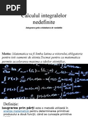Integrala definita cu schimb de variabila. Integrarea prin schimbare de variabila. Prin utilizarea serviciilor noastre, iti exprimi acordul cu privire la faptul ca folosim module cookie in vederea analizarii traficului si a furnizarii de publicitate.