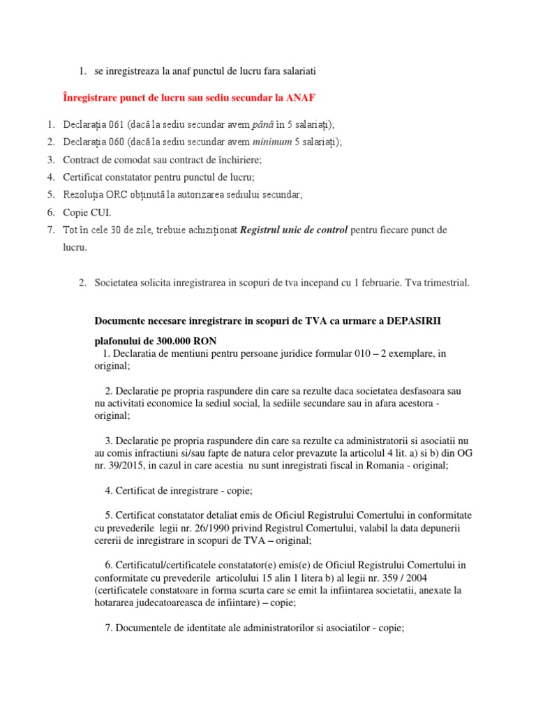 Plan de măsuri pentru eficientizarea colectării veniturilor la bugetul general consolidat; 3725/19.12.2017 , publicat in monitorul oficial nr. 070 declarație de înregistrare fiscală/declarație de mențiuni/declarație de radiere pentru persoanele fizice care desfășoară activități economice în mod independent sau exercită profesii.